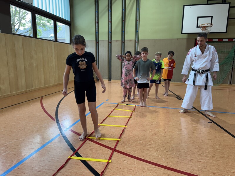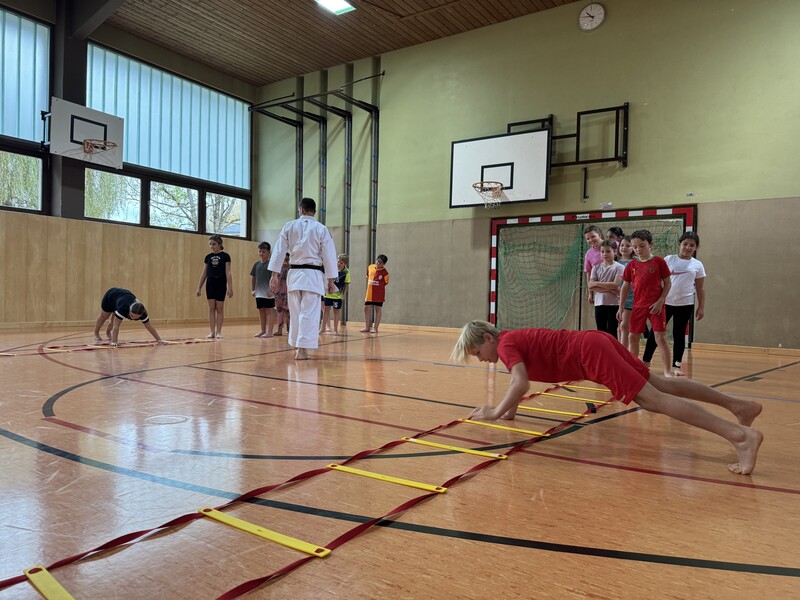 Mit viel Disziplin waren die Kinder motiviert bei den Koordinationsübungen und den Karate-Grundbewegungen dabei.