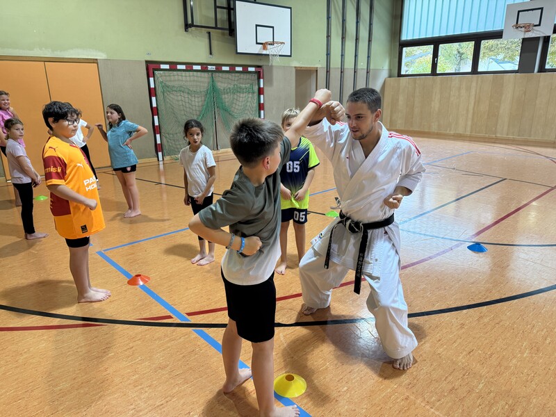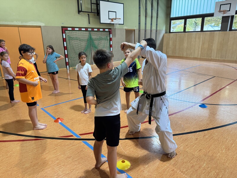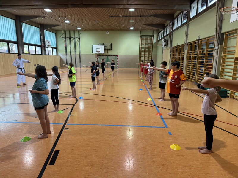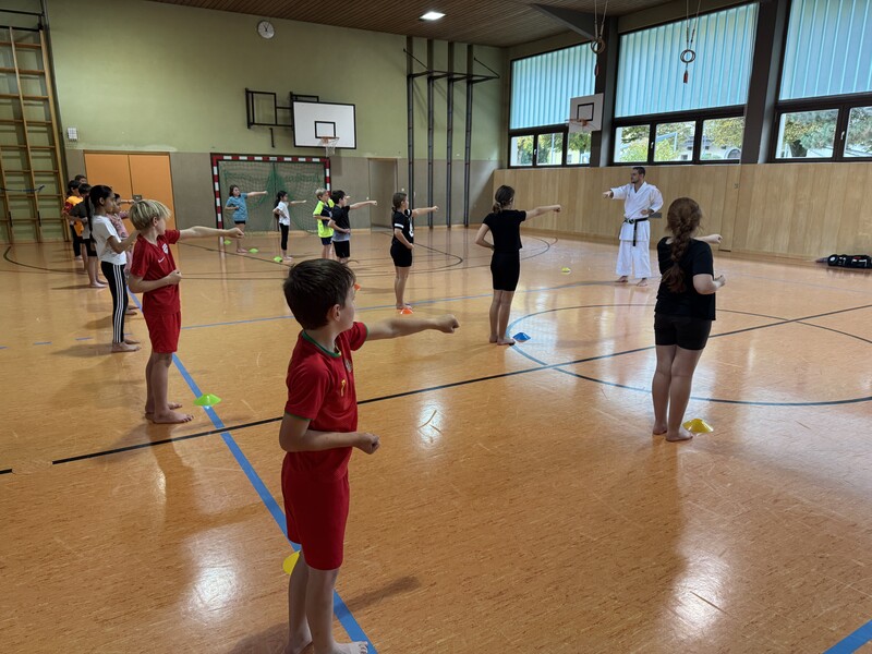 Auch in diesem Schuljahr durfte jede Klasse eine Karate-Trainingsstunde mit Christian vom Karateverein verbringen.